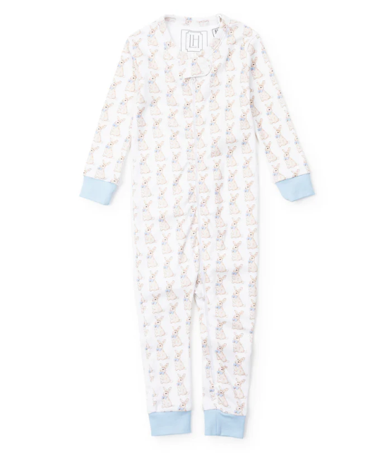 Pima cotton zippered pajama. Sizes 0-3m, 3-6m, 6-9m and 9-12m have feet. Made from 100% Peruvian Cotton. Our pajamas are designed with care and in compliance with CPSC safety standards. They are free from flame-retardant chemicals and are not flame resistant, so they are made to fit snugly.