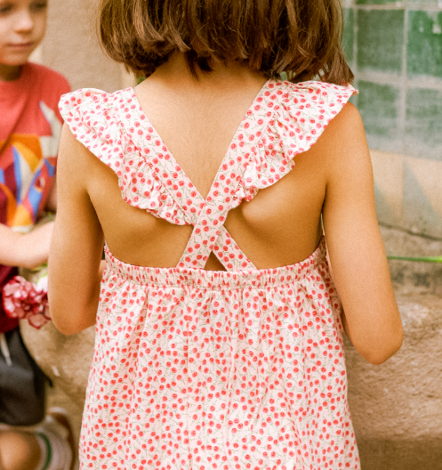 An easy, warm-weather favorite designed for comfort and everyday adventures. This Ruffle Strap Dress features a softly gathered skirt and playful ruffle straps that feel light and effortless all day long. Spain-inspired prints, drawn by our in-house artists, bring vibrant color and expressive detail to a timeless silhouette. Thoughtfully made for movement and ease, it's a go-to for sunny days, special moments, and everything in betweenmade to be worn often, washed well, and passed along when the time comes.