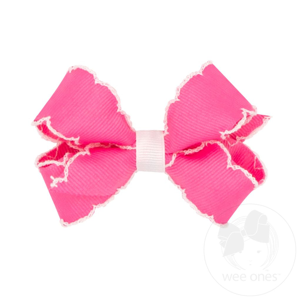 If you're looking for a classic and colorful complement to her special outfit, our moonstitch small bow adds the perfect finishing touch to any ensemble. This bow is sure to stay in her hair all day with our patented WeeStay™ no-slip hair clip.
