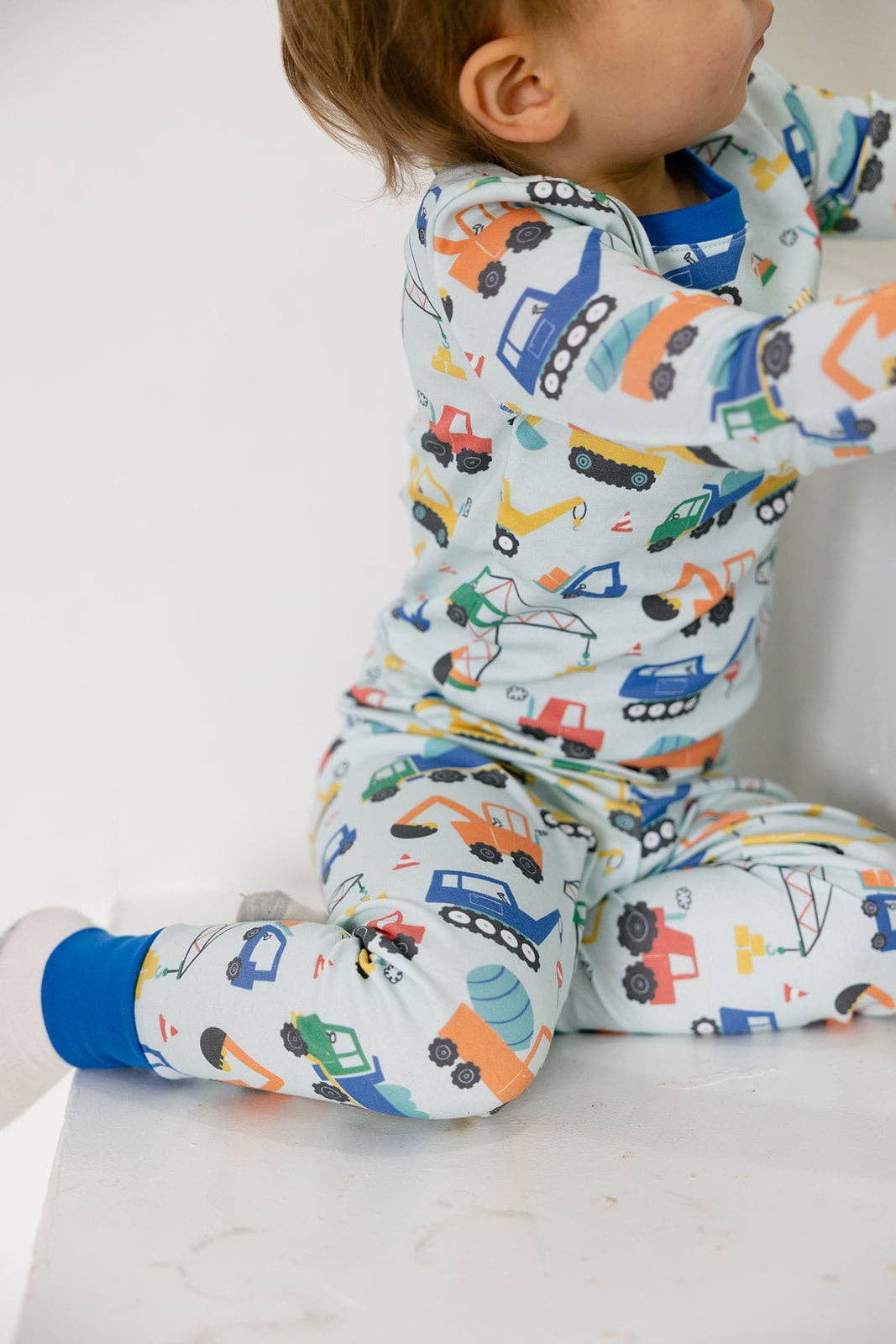 Introduce your child to the Bianca and Bear Construction Mint Long Sleeve Pajama Set. This sleepwear set is made from Pima cotton, known for its softness, strength, and resistance to pilling. It's gentle on delicate skin and ensures the outfit stays fresh wash after wash. The breathable, hypoallergenic, and eco-friendly attributes of Pima cotton will let your child rest easy. Dress them in comfort, style, and sustainability with Bianca and Bear.